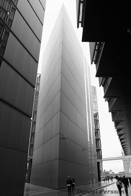 3. London, jag gillade formen på byggnaden och för att förena gammalt och nytt gjorde jag så att en bit av Tower Bridge skymtar i bakgrunden