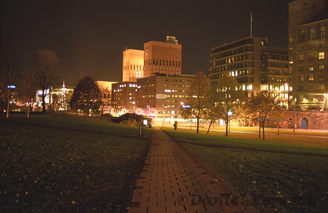 14. Oslo, Gångvägen till Rådhuset. en höstkväll